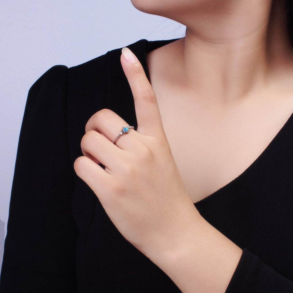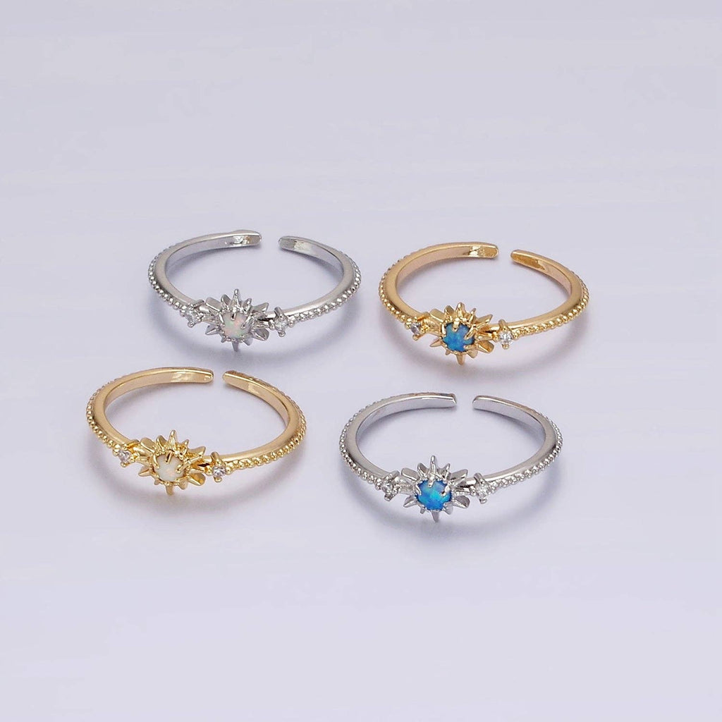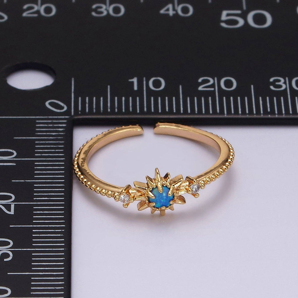 14K Gold Filled White, Blue Opal Celestial Star Micro Paved Dotted Ring in Gold & Silver | O1160 - O1163