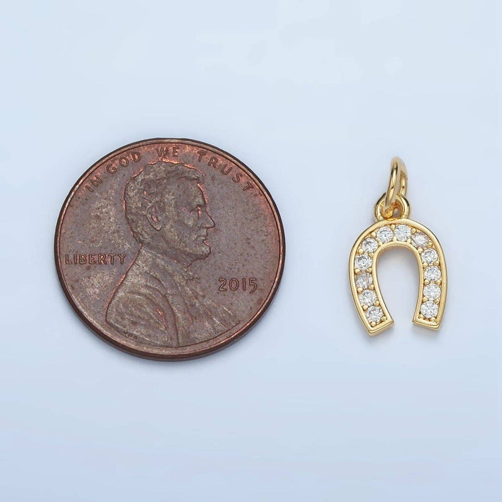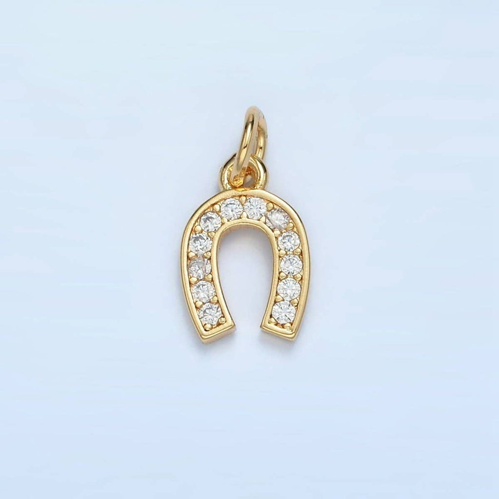 24K Gold Filled Clear CZ Micro Paved Horseshoe Charm | M019