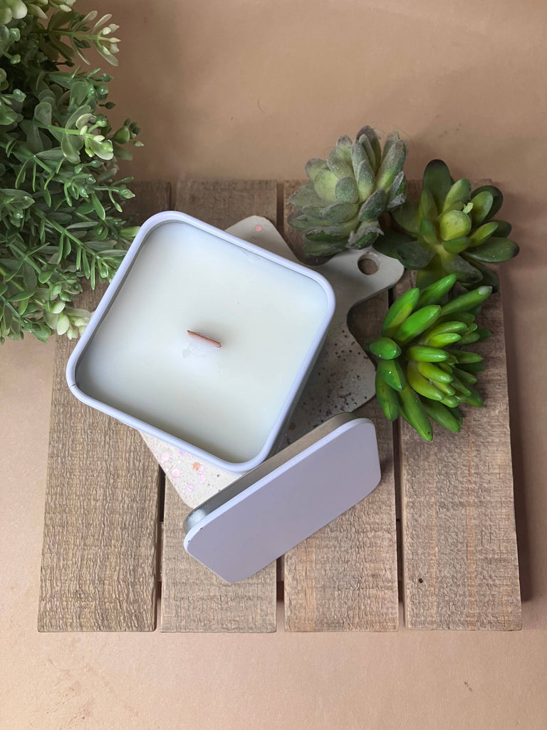 These candle tins are the perfect size for a small kitchen, bathroom, laundry room or bedroom. They are long burning with all natural wooden wicks. A proprietary coconut, olive oil Wax is used along with phthalate and paraben free clean scents!