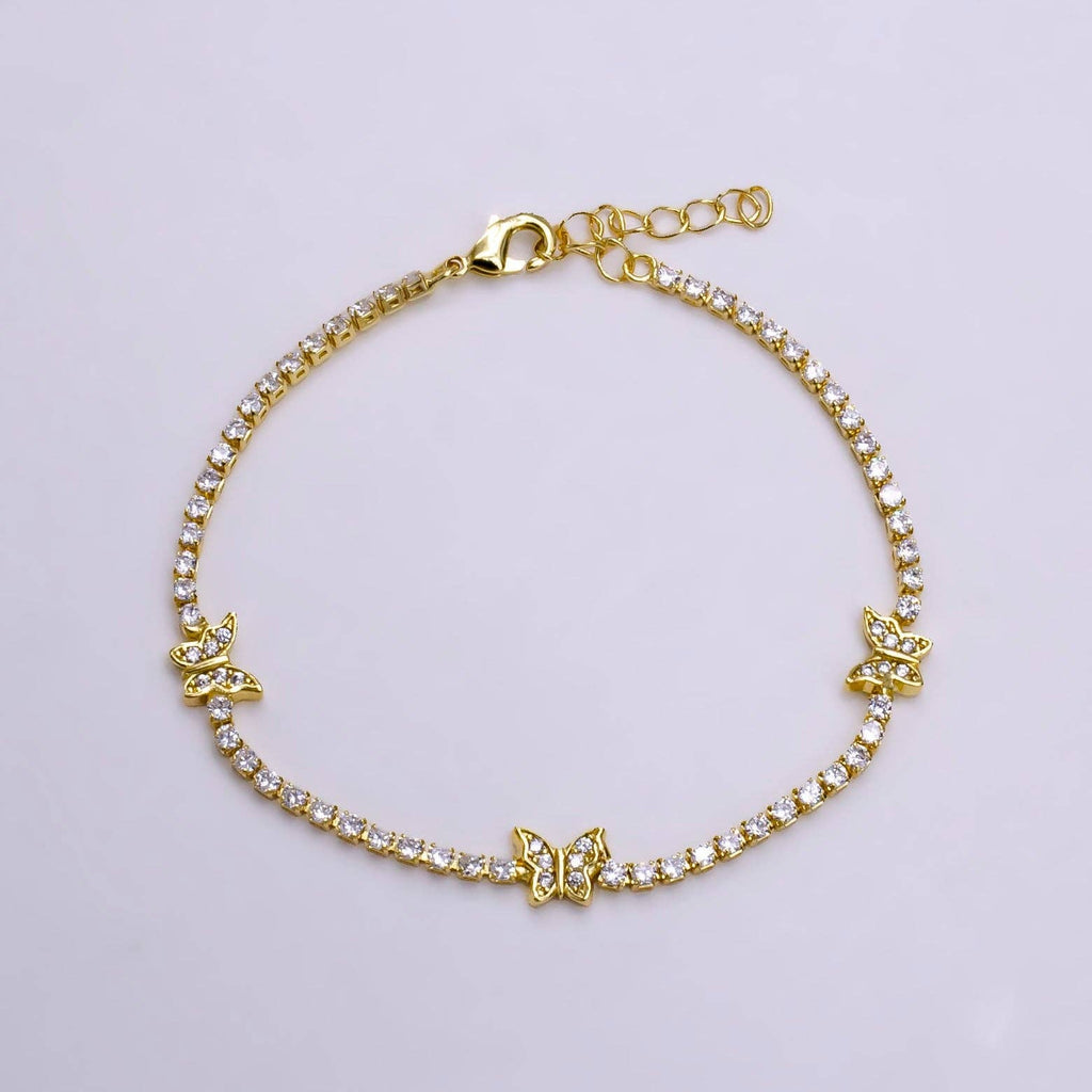 7" Gold Filled Clear CZ Butterfly Tennis Chain Bracelet
