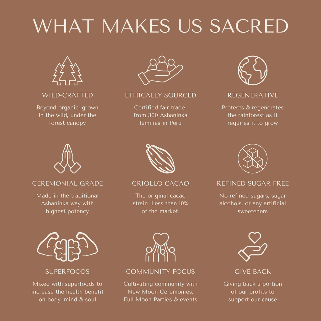Made with 100% Pure Ceremonial Grade Heirloom Criollo Cacao Mass.