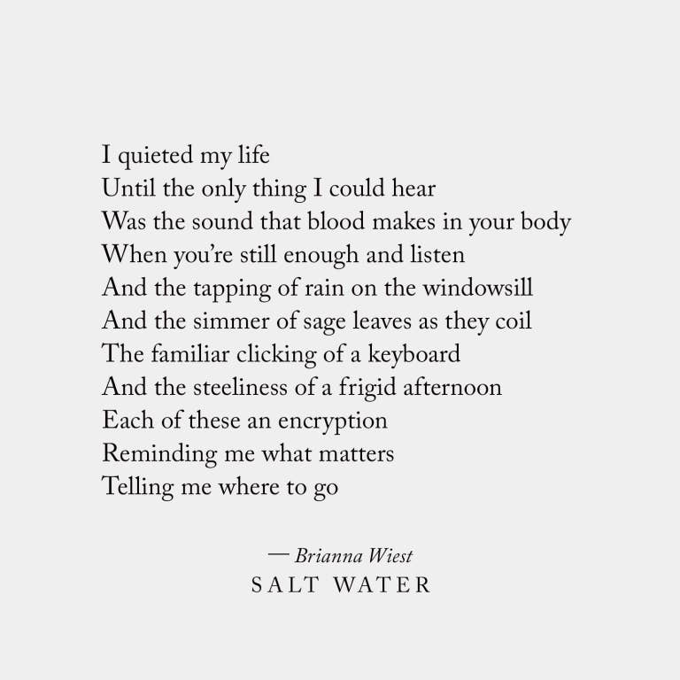 In her debut poetry collection, Brianna Wiest pioneers a new cross-genre of writing. Through her freeform approach, Brianna's words artfully illustrate our deep connection to the natural world as to ourselves, distilling the essence of wisdom into lines that are sure to touch your heart and open your soul.